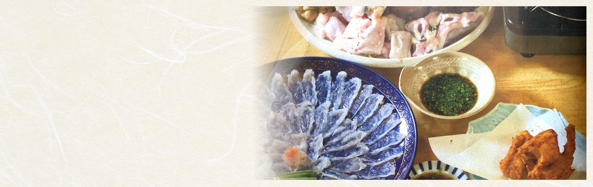 小鉢2品 ・ふぐ刺し ・ふぐから揚げ ・ふぐ鍋 ・ぞうすい